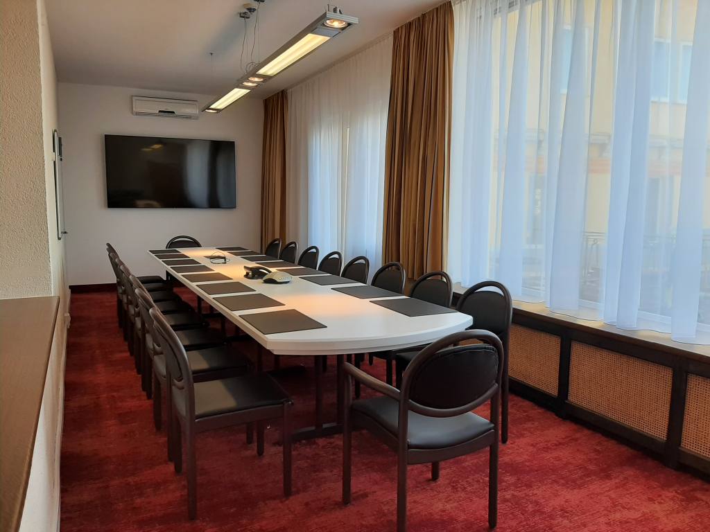 - Prince – 190,00€ ~30m², Konferenz- Blockbestuhlung bis max. 16 Personen, Klima, Whiteboard mit Stiften, Flatscreen 82″ mit Anschluss für Laptop/Tablet